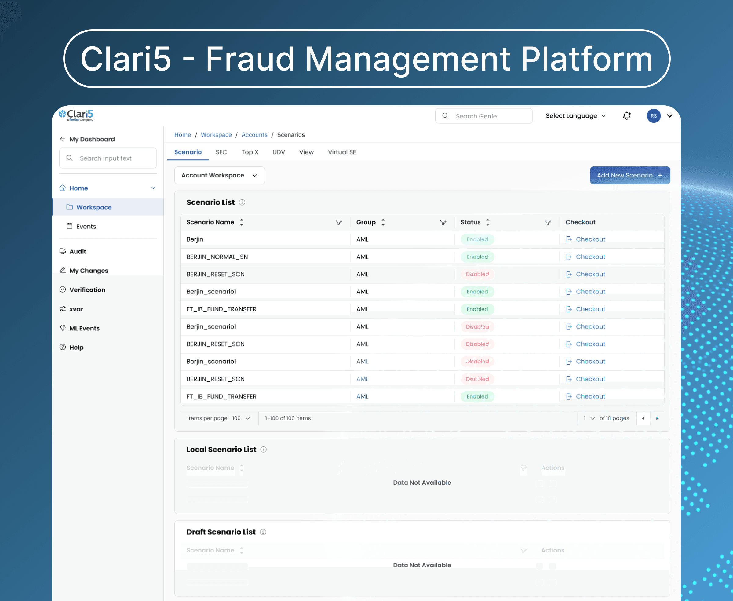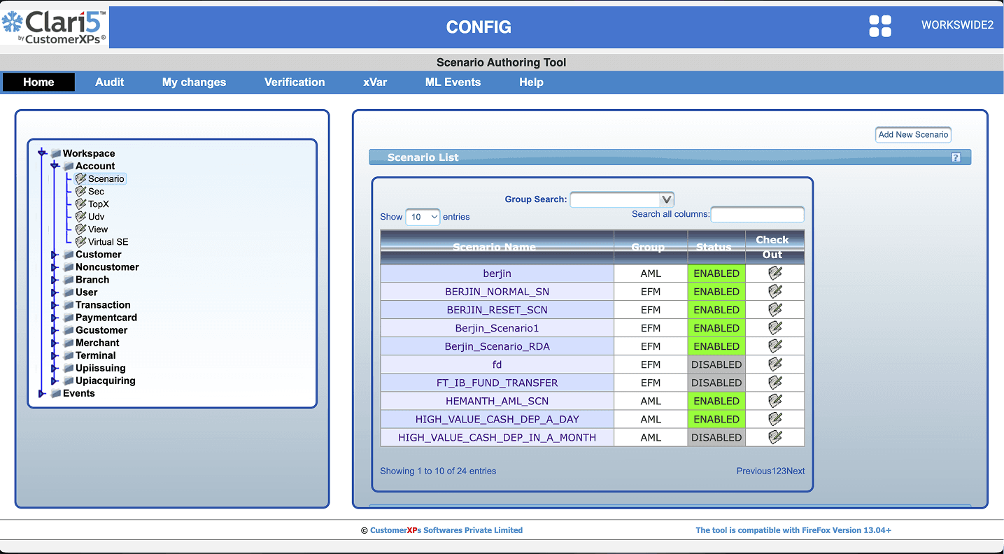 The redesigned interface significantly improved usability for analysts managing fraud scenarios within Clari5: