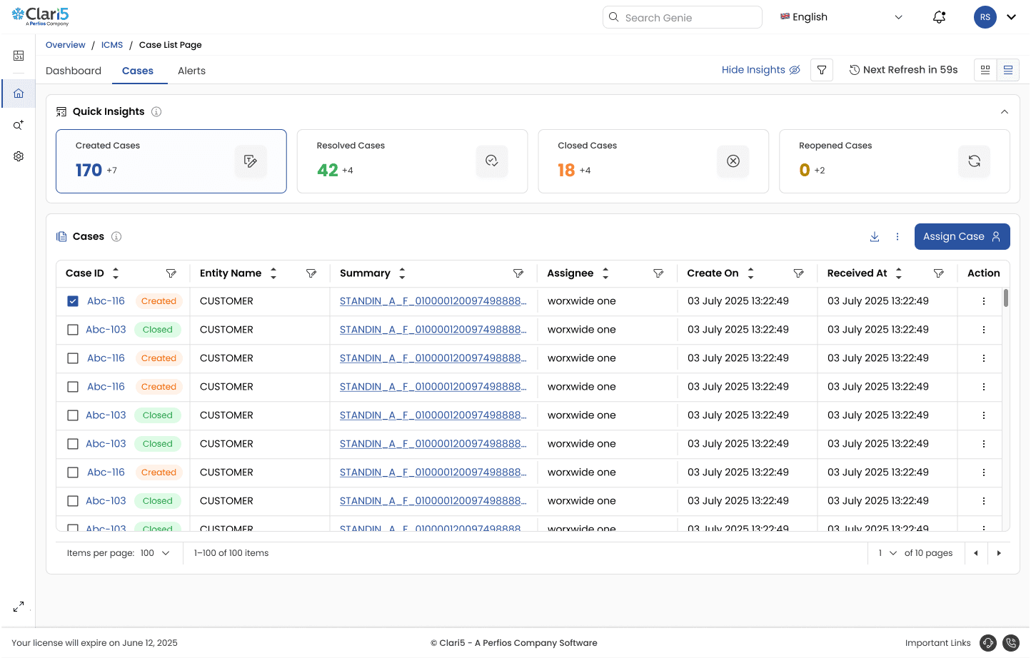 4.) Clear primary actions like “Assign Case” surfaced on top-right.