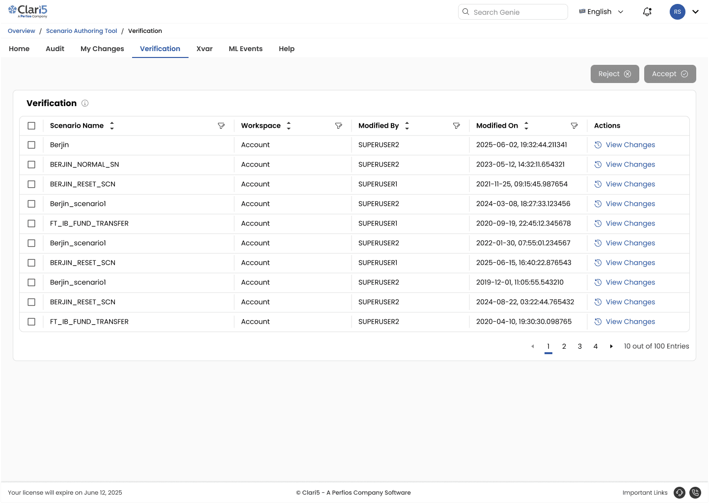 4.) Designed for bulk action clarity with checkbox selections and grouped Accept/Reject controls.