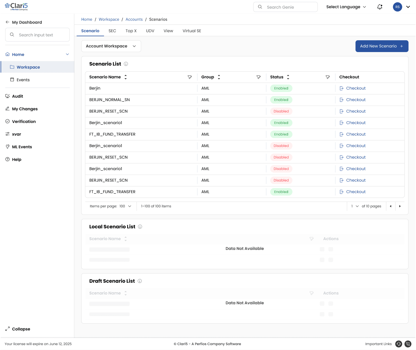 Focused on streamlining information-heavy screens for enterprise analysts. Two high-traffic workflows: the Scenario List and Verification pages, were redesigned to reduce visual noise and improve usability without sacrificing data density.